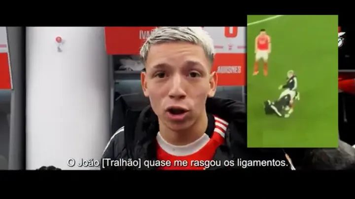 «O João quase me rasgou os ligamentos! Tens de procurar o vídeo e meter isso. A festejar o golo do Trubin», atirou, entre risos, arrancando gargalhadas de colegas e membros do staff.